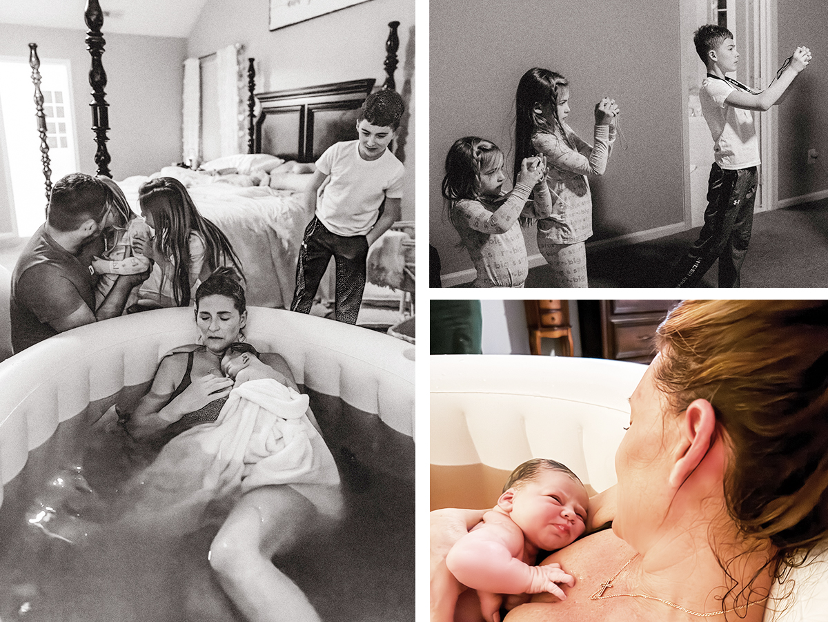 This birth flowed from beginning to end. I remember smiling and laughing between waves, my three children nearby, taking photos and waiting to meet their baby sister. At one point I looked up and let out a brief cry (I believe this was my transition) missing my mom who was not at my birth this time, asking for my team to tell me I can do this, and then quickly shifting to “I feel the water bag, she’s coming,” as I supported my perineum, breathing her down and allowing the fetal ejection reflex to take over completely.